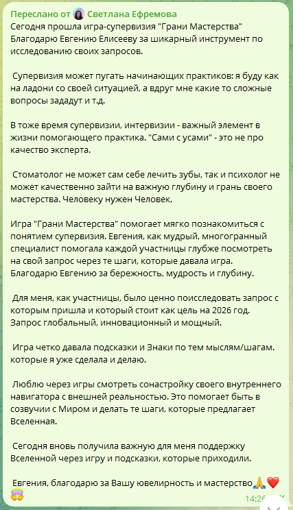 Так же и мастерство психолога, коуча, игропрактика или любого специалиста помогающей профессии. Оно рождается внутри человека вместе с глубоким пониманием человеческой природы, эмпатией и искренним желанием помогать другим людям найти путь к счастью и благополучию. Однако лишь благодаря постоянной работе над собой, регулярному самоанализу и обмену опытом с коллегами специалист обретает тот самый блеск профессионализма.